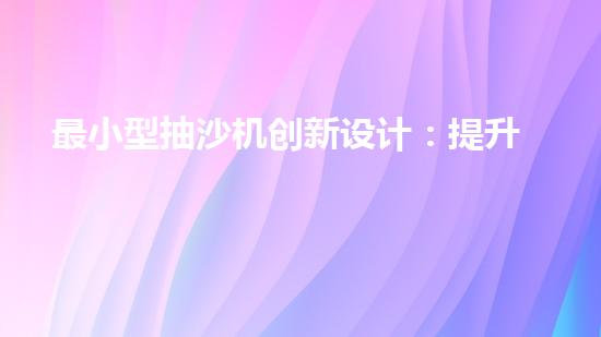 最小型抽沙機創新設計:提升效率的抽沙設備如何改變產業格局?